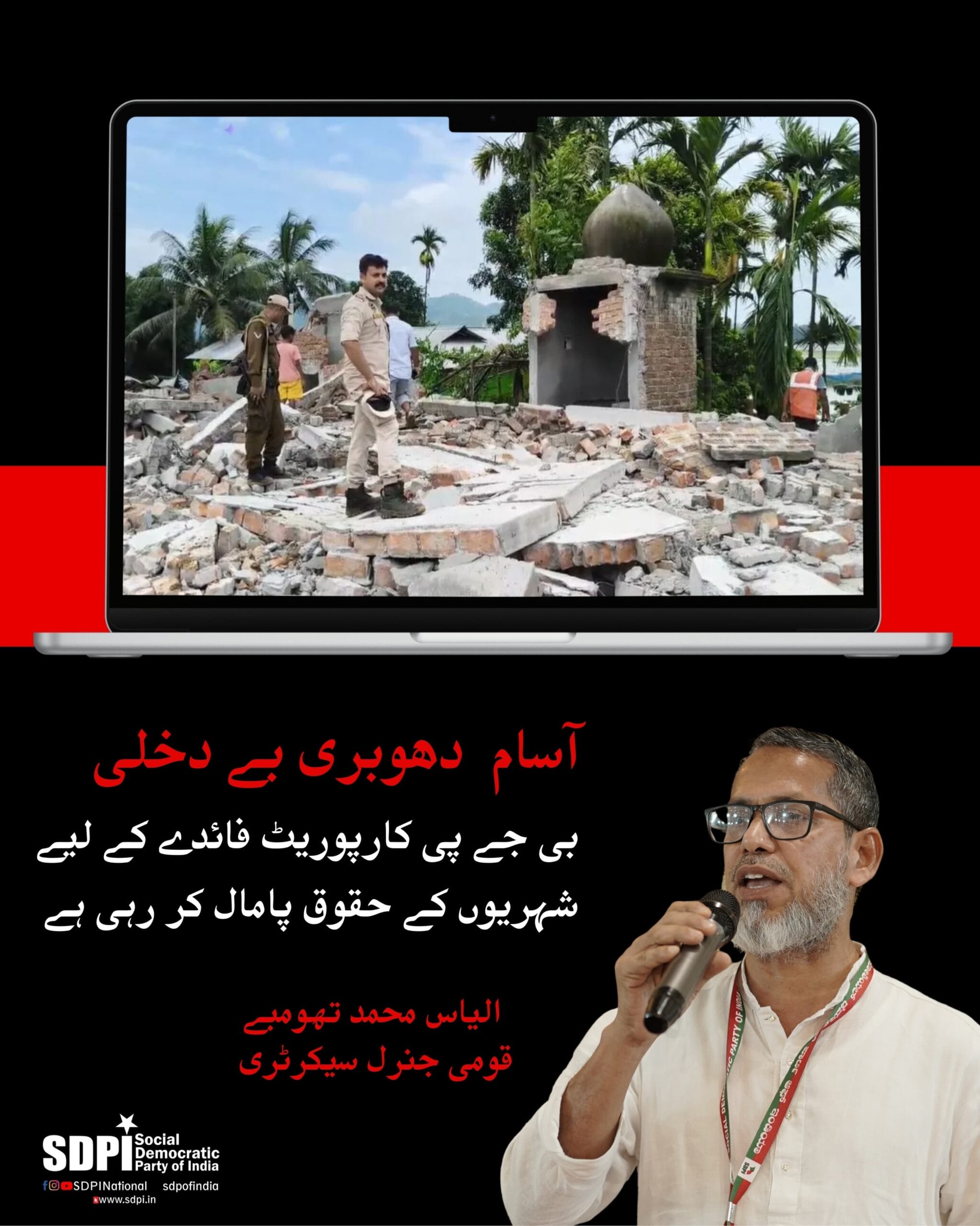 آسام دھوبری بے دخلی۔ بی جے پی کارپوریٹ فائدے کے لیے شہریوں کے حقوق پامال کر رہی ہے۔ ایس ڈی پی آئی