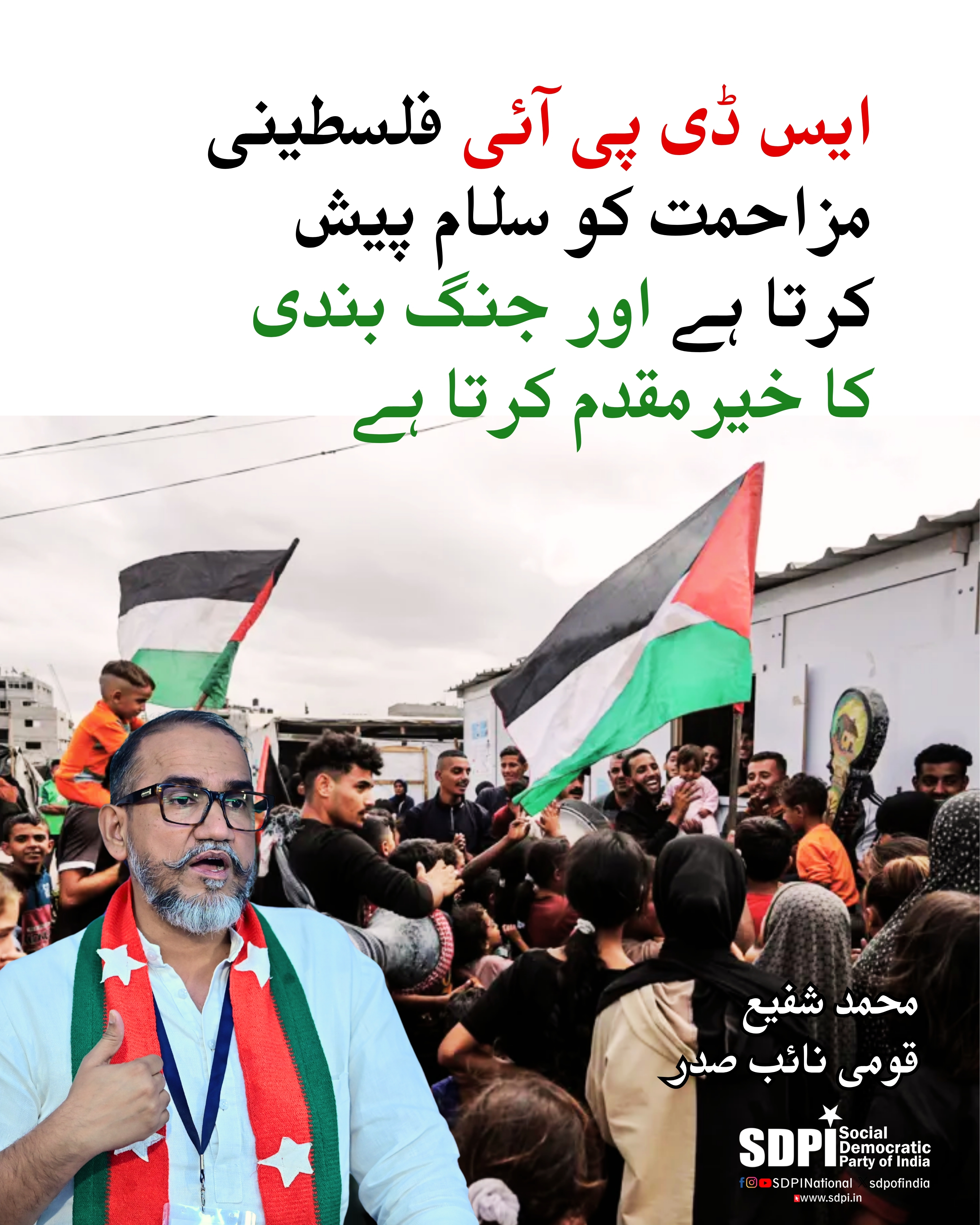 ایس ڈی پی آئی فلسطینی مزاحمت کو سلام پیش کرتا ہے اور، جنگ بندی کا خیرمقدم کرتا ہے۔ محمد شفیع