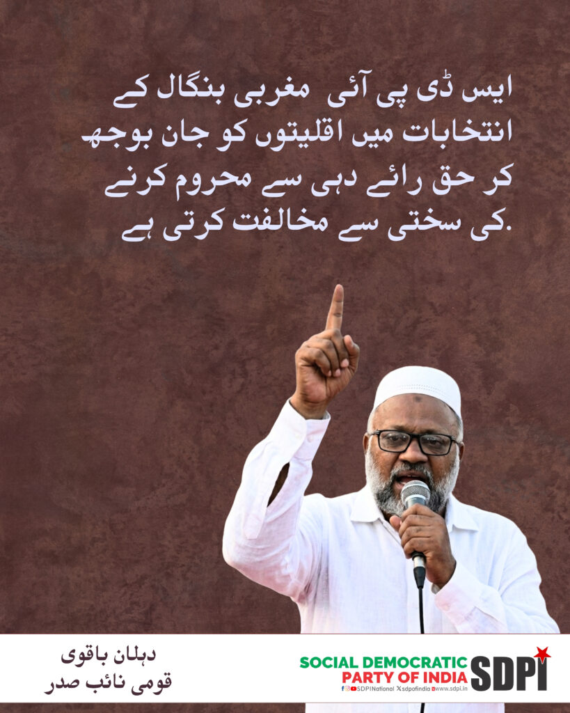 ایس ڈی پی آئی مغربی بنگال کے انتخابات میں اقلیتوں کو جان بوجھ کر حق رائے دہی سے محروم کرنے کی سختی سے مخالفت کرتی ہے