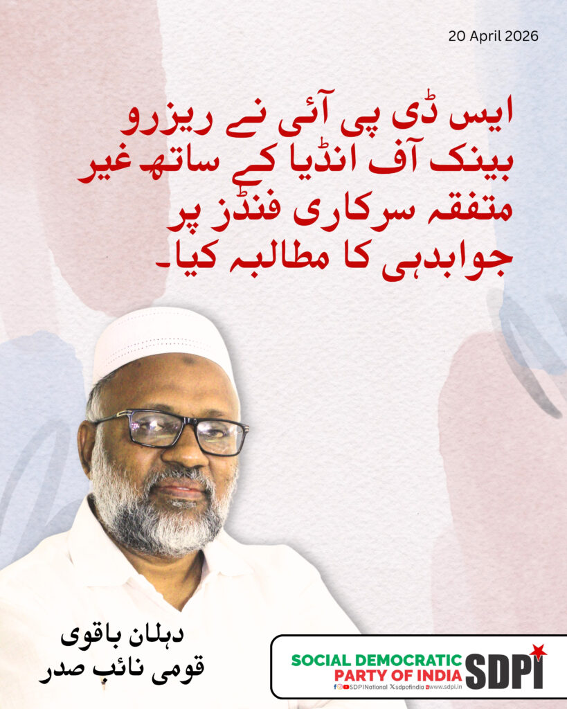 ایس ڈی پی آئی نے ریزرو بینک آف انڈیا سے غیر تصدیق شدہ سرکاری فنڈز پر جوابدہی کا مطالبہ کیا