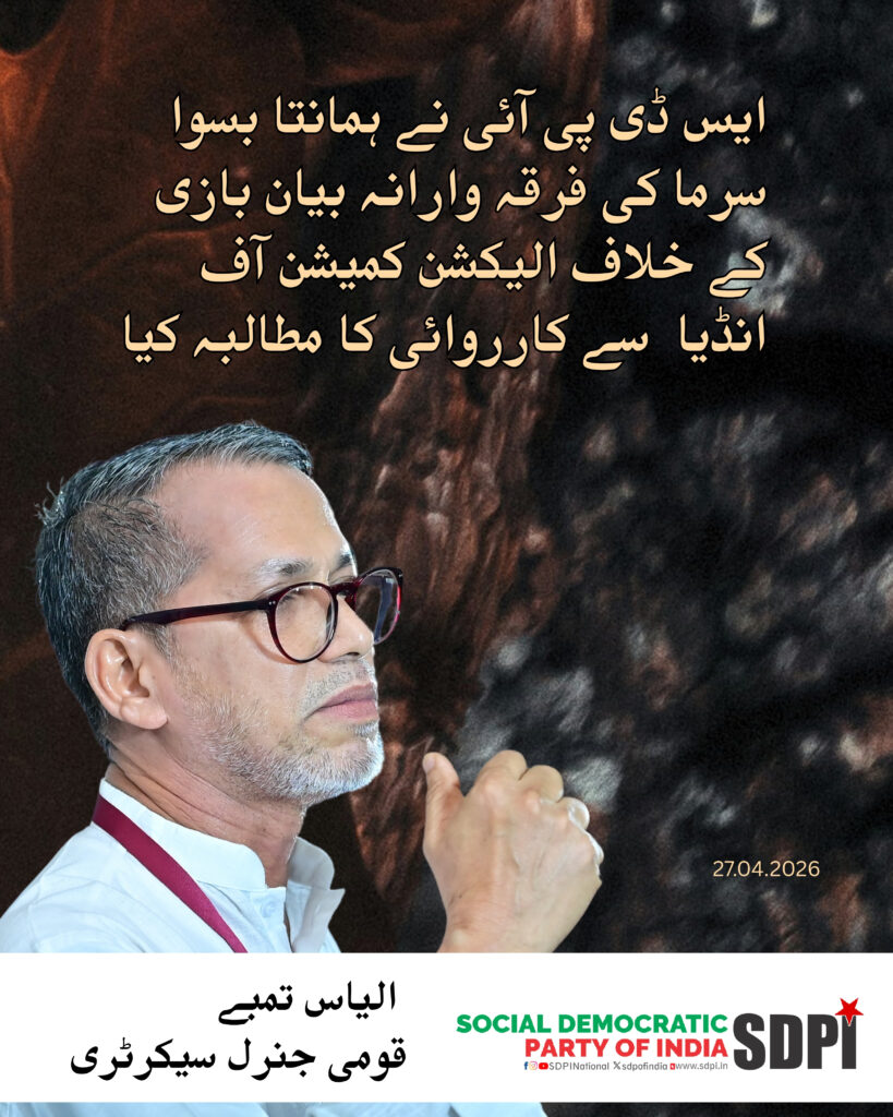ایس ڈی پی آئی نے ہیمنت بسوا سرما کی فرقہ وارانہ بیان بازی کے خلاف الیکشن کمیشن آف انڈیا سے کارروائی کا مطالبہ کیا