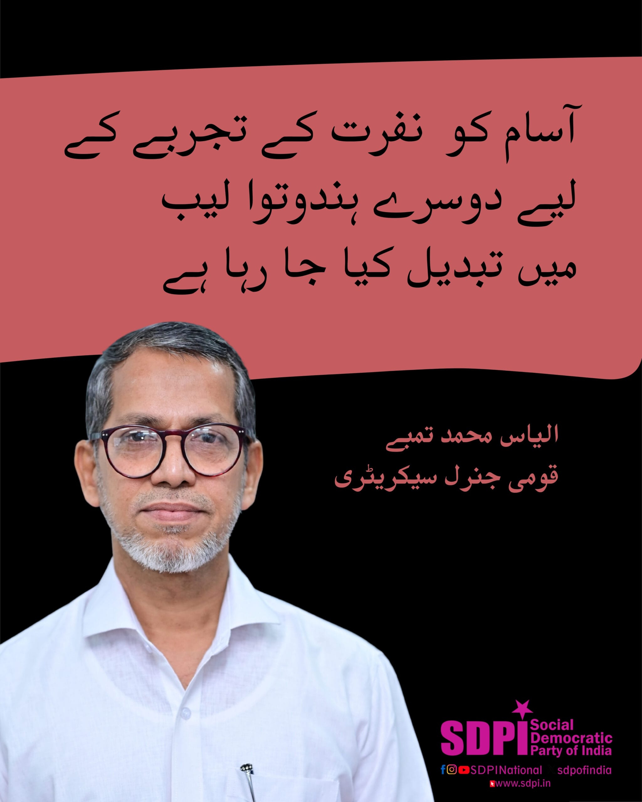نفرت کے تجربے کے لیے آسام کو ایک اور ہندوتوا لیب میں تبدیل کیا جارہا ہے۔ ایس ڈی پی آئی