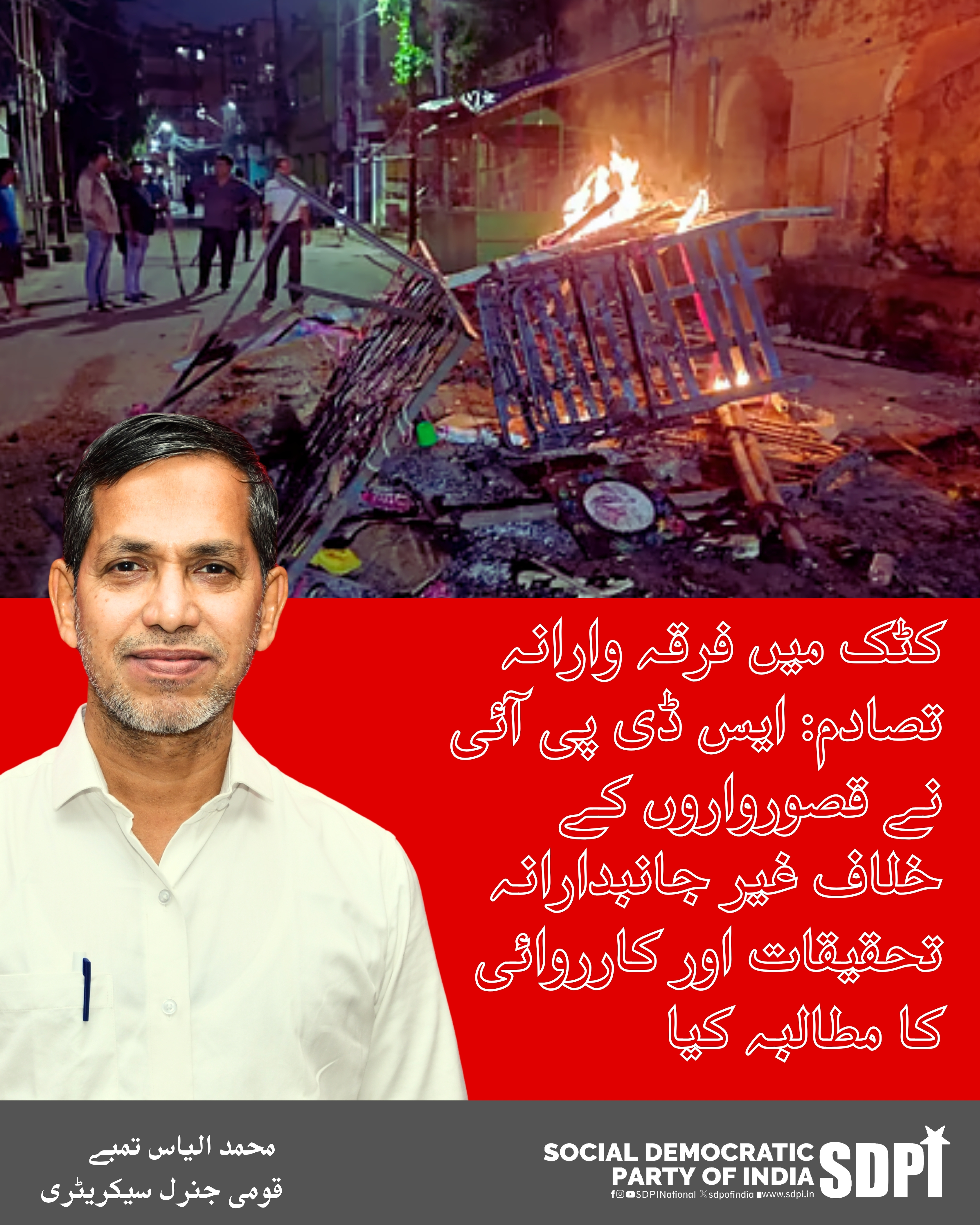 کٹک میں فرقہ وارانہ تصادم: ایس ڈی پی آئی نے قصورواروں کے خلاف غیر جانبدارانہ تحقیقات اور کارروائی کا مطالبہ کیا