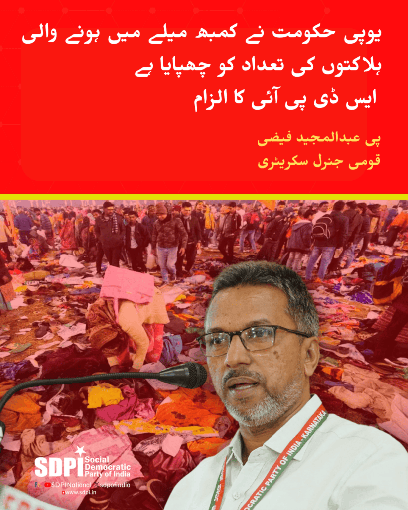 یو پی حکومت نے کمبھ میلے میں ہونے والی ہلاکتوں کی تعداد کو چھپایا ہے۔ ایس ڈی پی آئی کا الزام