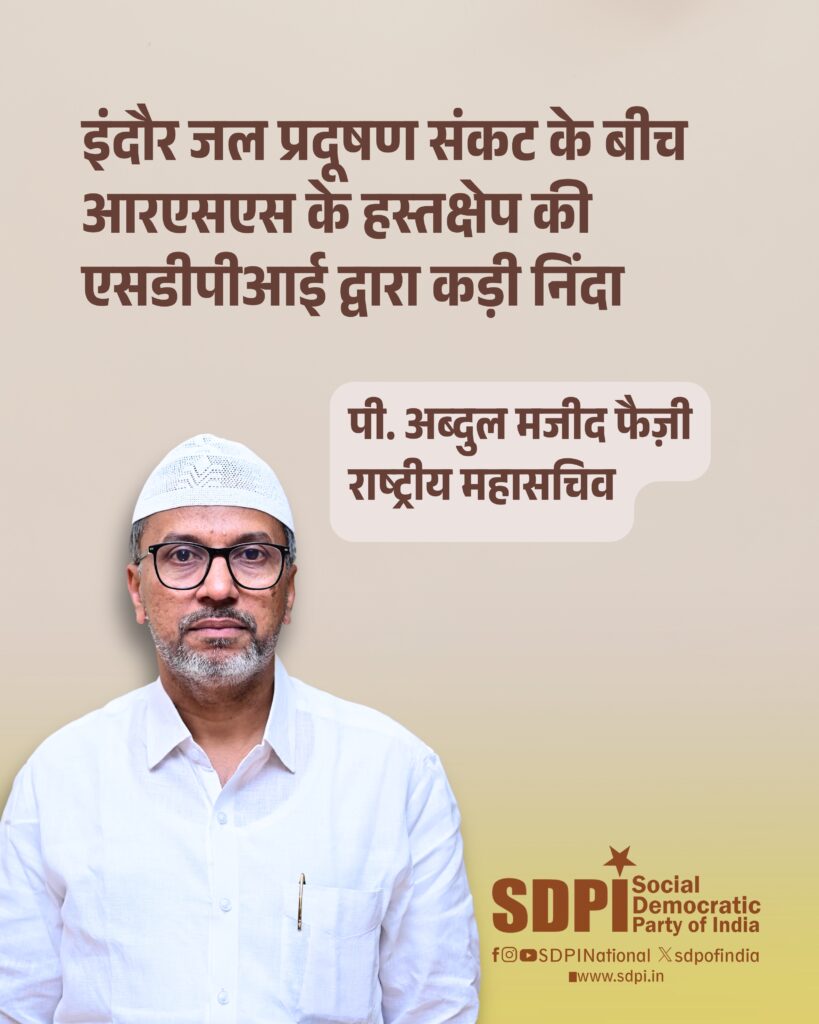 इंदौर जल प्रदूषण संकट के बीच आरएसएस के हस्तक्षेप की एसडीपीआई द्वारा कड़ी निंदा