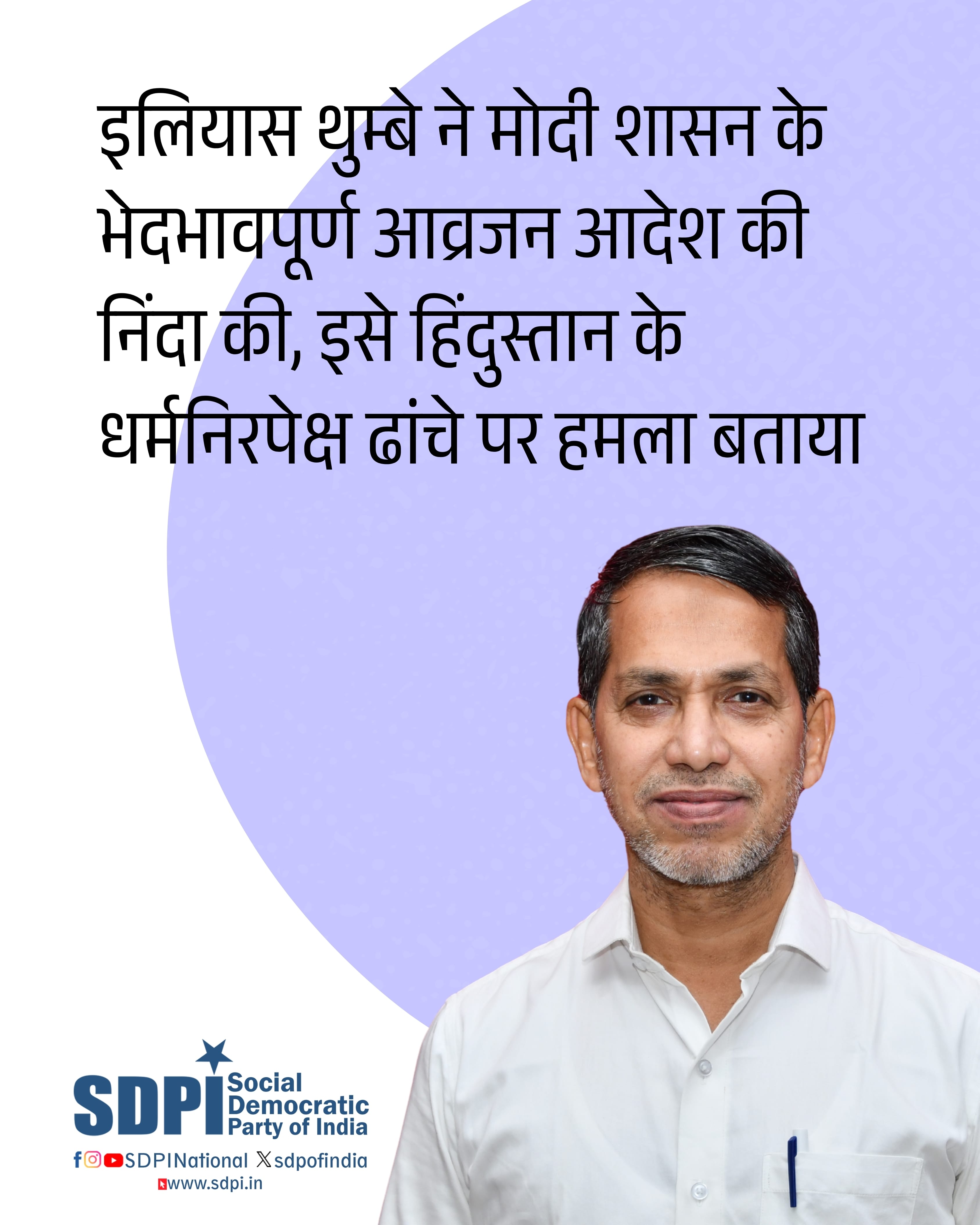 इलियास थुम्बे ने मोदी शासन के भेदभावपूर्ण आव्रजन आदेश की निंदा की, इसे हिंदुस्तान के धर्मनिरपेक्ष ढांचे पर हमला बताया