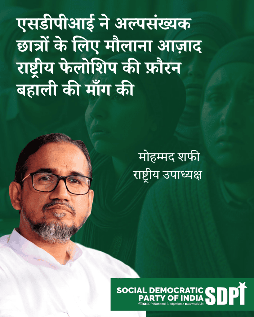 एसडीपीआई ने अल्पसंख्यक छात्रों के लिए मौलाना आज़ाद राष्ट्रीय फेलोशिप की फ़ौरन बहाली की माँग की