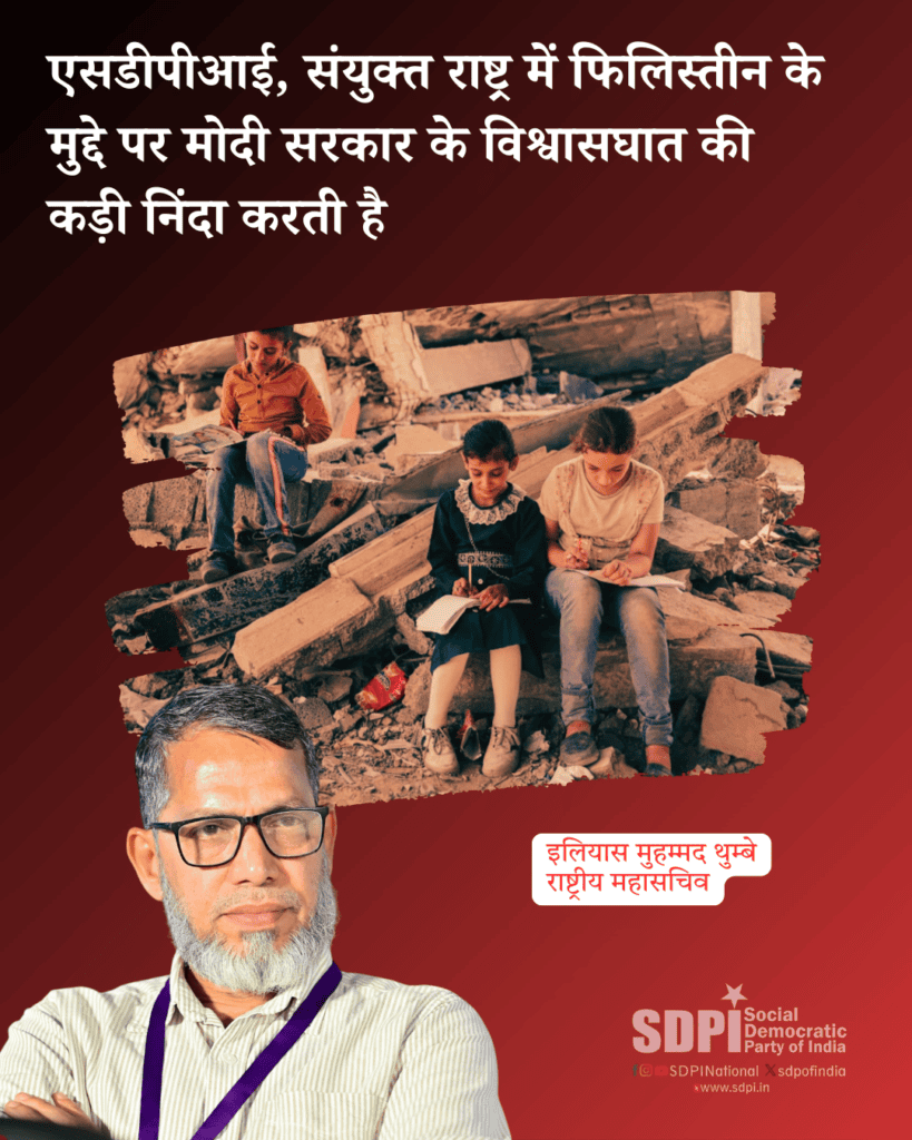 एसडीपीआई, संयुक्त राष्ट्र में फिलिस्तीन के मुद्दे पर मोदी सरकार के विश्वासघात की कड़ी निंदा करती है
