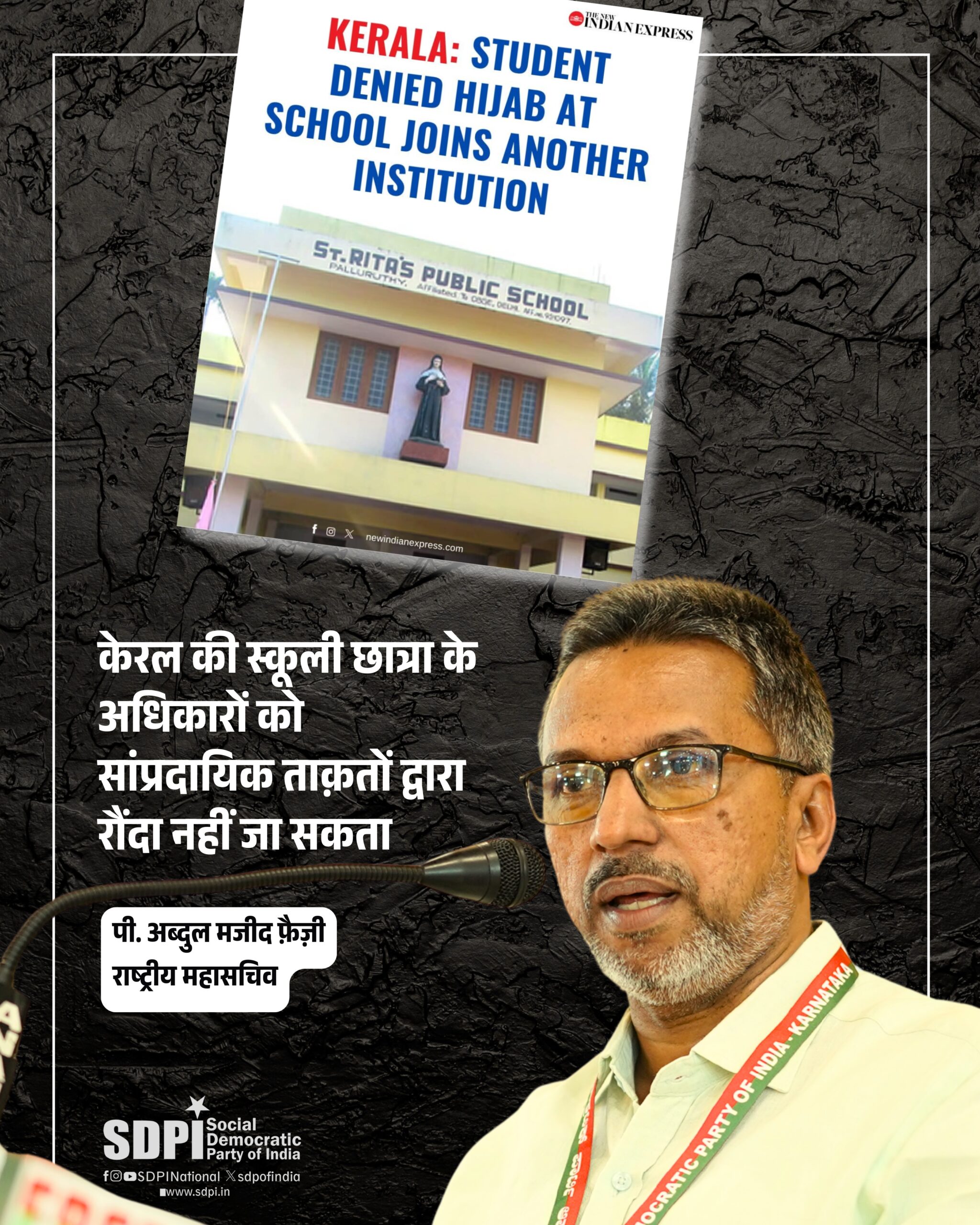 केरल के एर्नाकुलम ज़िले के पल्लुरुथी स्थित सेंट रीटा पब्लिक स्कूल के अधिकारियों द्वारा एक मुस्लिम छात्रा को यह कहते हुए हिजाब पहनकर कक्षा में आने से रोक देना कि स्कूल की यूनिफॉर्म नीति इसकी अनुमति नहीं देती — यह एक अत्यंत दुर्भाग्यपूर्ण घटना है, जो राज्य की सांप्रदायिक सौहार्द और सामाजिक एकता को प्रभावित कर सकती है।