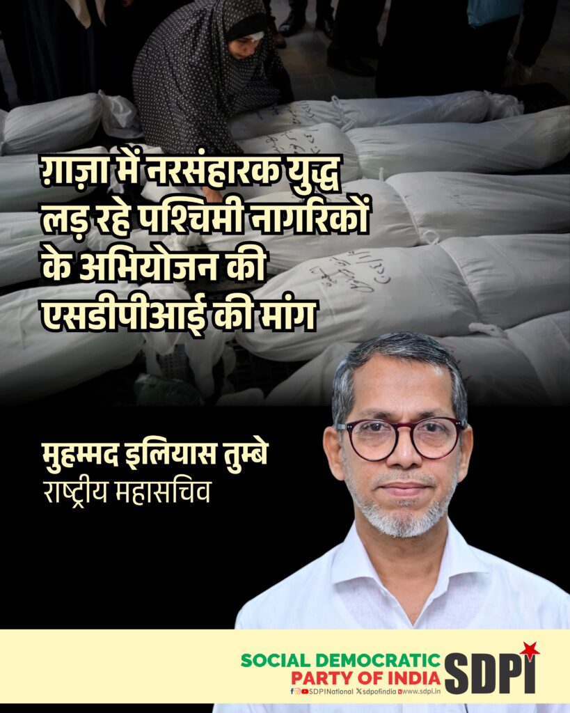 सोशल डेमोक्रेटिक पार्टी ऑफ इंडिया इस खुलासे की कड़ी निंदा करती है कि पचास हज़ार से अधिक विदेशी पासपोर्ट धारक इस्राइली सेना की पंक्तियों में सेवा दे रहे हैं। यह रहस्योद्घाटन कोई अलग-थलग या सीमांत घटना नहीं है, बल्कि उन शक्तिशाली देशों की गहरी संलिप्तता का स्पष्ट प्रमाण है जिनके नागरिक ग़ाज़ा में फ़िलिस्तीनी जनता के खिलाफ़ बढ़ती संख्या में अंतरराष्ट्रीय पर्यवेक्षकों द्वारा जानबूझकर किए जा रहे नरसंहारक हमले के रूप में वर्णित कार्रवाई में भाग ले रहे हैं।