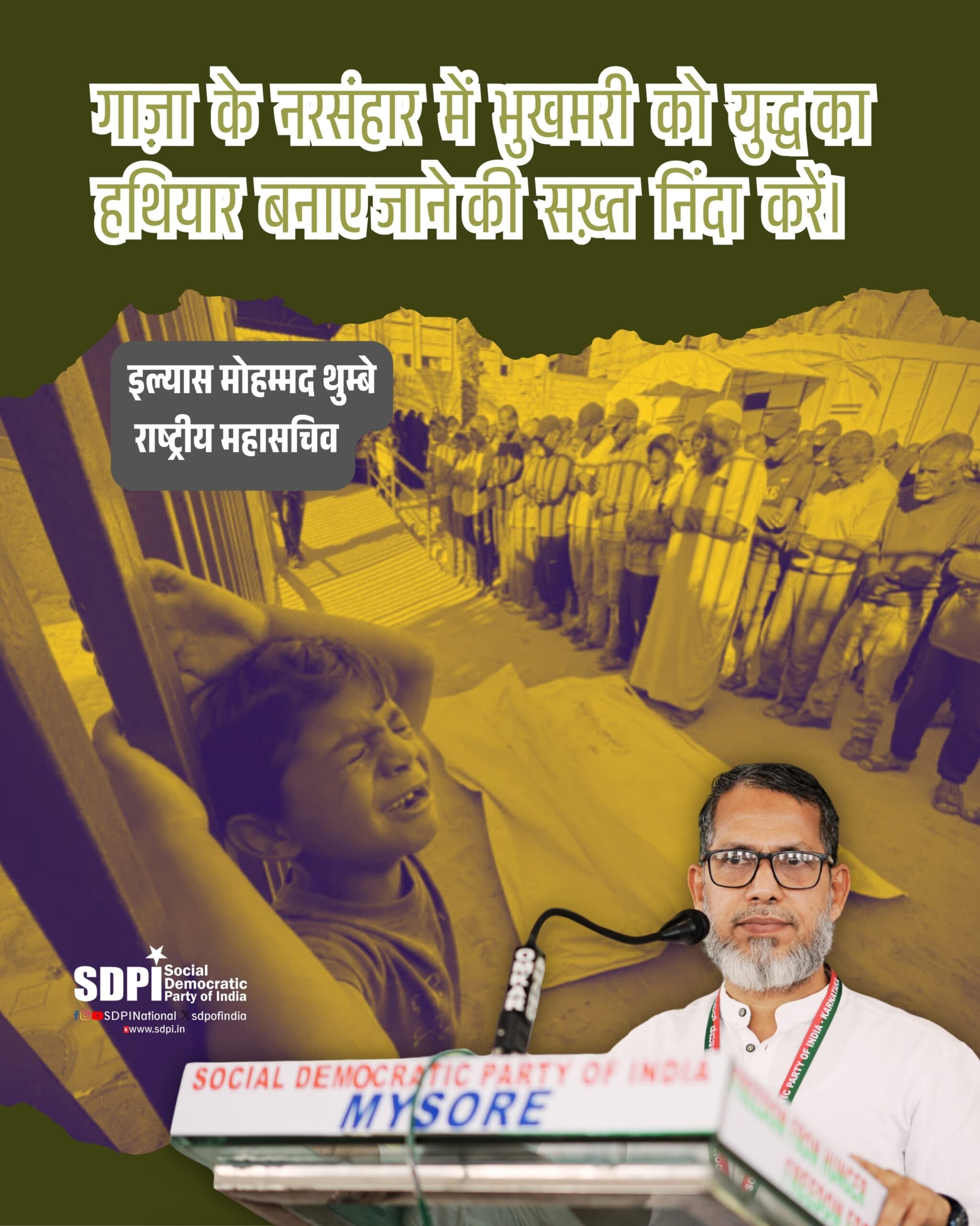 एसडीपीआई हिंदुस्तान की जनता से अपील करती है कि वे गाज़ा पट्टी में फ़िलिस्तीनी जनता पर हो रहे इस भयानक अन्याय के ख़िलाफ़ अपनी आवाज़ बुलंद करें।