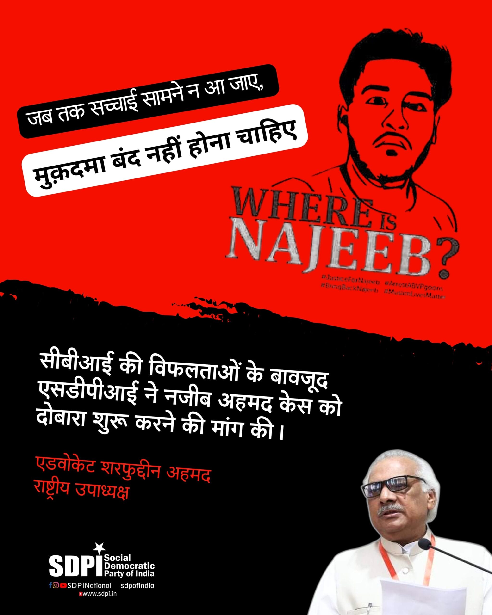 जब तक सच्चाई सामने न आ जाए, मुक़दमा बंद नहीं होना चाहिए — सीबीआई की विफलताओं के बावजूद एसडीपीआई ने नजीब अहमद केस को दोबारा शुरू करने की मांग की।