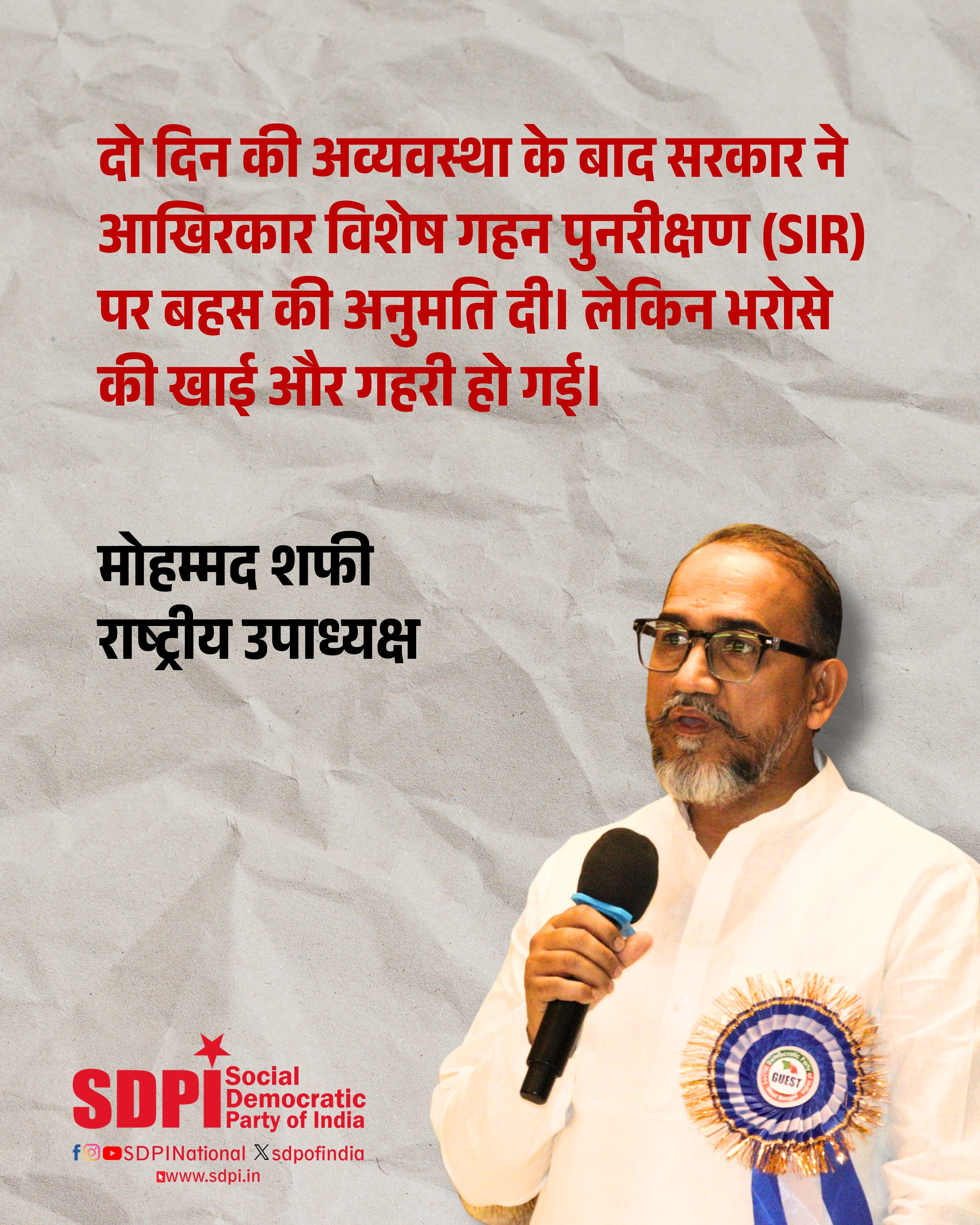 मतदाता सूची के विशेष गहन संशोधन को लेकर बढ़ती जनचिंता पर जवाब देने के बजाय सरकार ने चुप्पी और बचाव का रास्ता चुना। और अब जब SIR को सामान्य चुनाव सुधारों की एक अस्पष्ट श्रेणी में धकेला जा रहा है, तो यह स्पष्ट दिखता है कि सरकार असली मुद्दों को संबोधित करने की बजाय अपनी राजनीतिक छवि बचाने में अधिक रुचि रखती है।