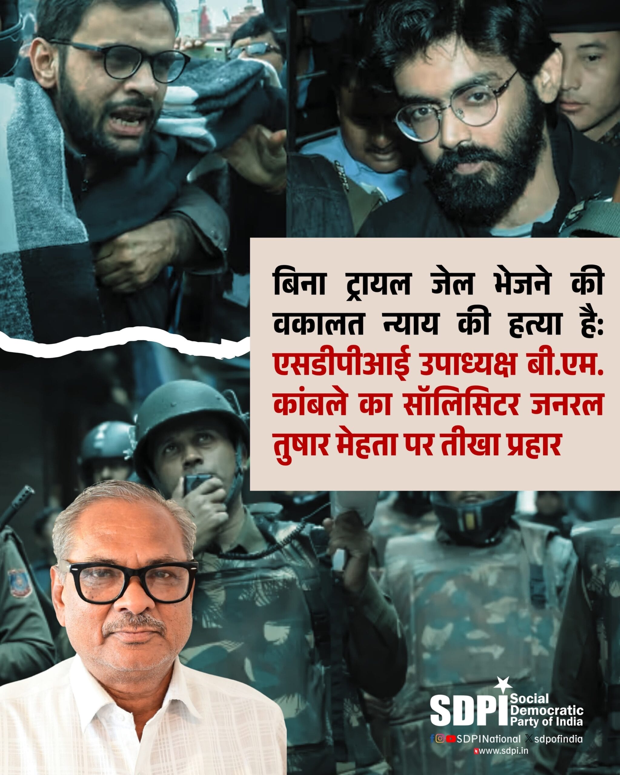 बिना ट्रायल जेल भेजने की वकालत न्याय की हत्या है: एसडीपीआई उपाध्यक्ष बी.एम. कांबले का सॉलिसिटर जनरल तुषार मेहता पर तीखा प्रहार