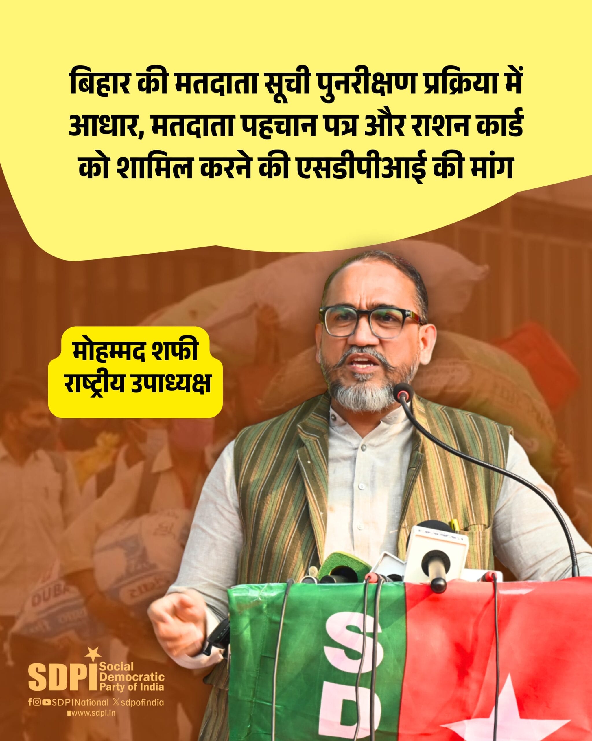 बिहार की मतदाता सूची पुनरीक्षण प्रक्रिया में आधार, मतदाता पहचान पत्र और राशन कार्ड को शामिल करने की एसडीपीआई की मांग