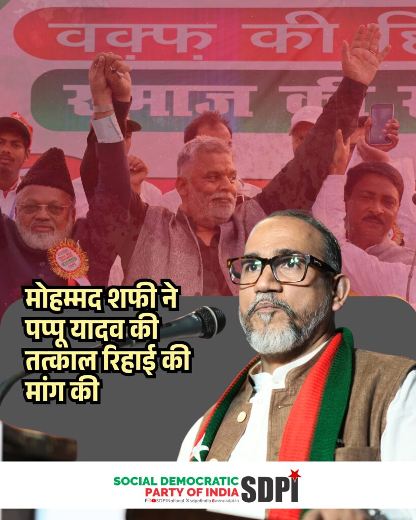 इस प्रकार की कार्रवाइयां लोकतांत्रिक सिद्धांतों को कमजोर करती हैं और कानून प्रवर्तन एजेंसियों में जनता के विश्वास को क्षीण करती हैं। एसडीपीआई पप्पू यादव की तत्काल रिहाई, उनकी गिरफ्तारी की परिस्थितियों की स्वतंत्र जांच और हाशिए पर पड़े तथा कमजोर वर्गों के अधिकारों की रक्षा करने वालों के विरुद्ध कानूनी व्यवस्था को हथियार बनाने वाली प्रतिशोध की राजनीति को समाप्त करने की मांग करती है।