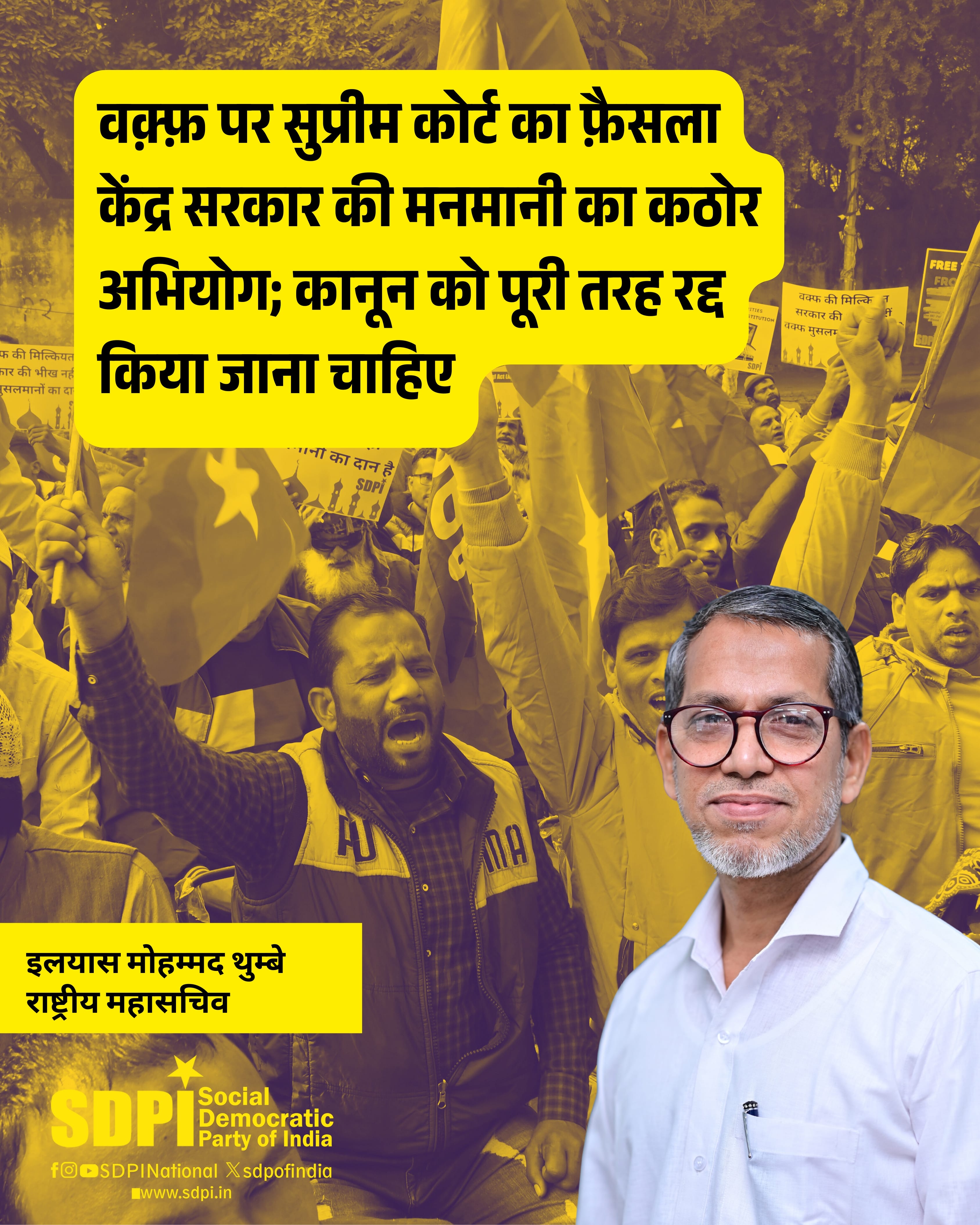 वक़्फ़ पर सुप्रीम कोर्ट का फ़ैसला केंद्र सरकार की मनमानी का कठोर अभियोग; कानून को पूरी तरह रद्द किया जाना चाहिए
