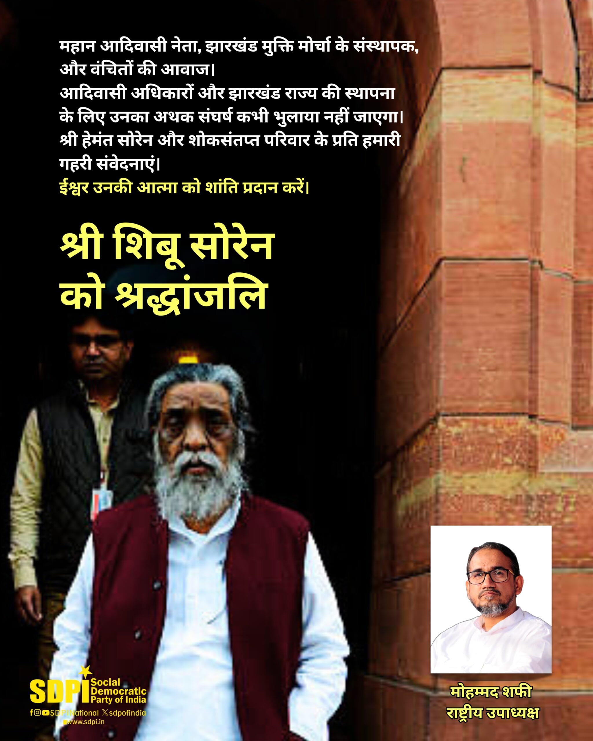 आदिवासी अधिकारों और झारखंड राज्य की स्थापना के लिए उनका अथक संघर्ष कभी भुलाया नहीं जाएगा।