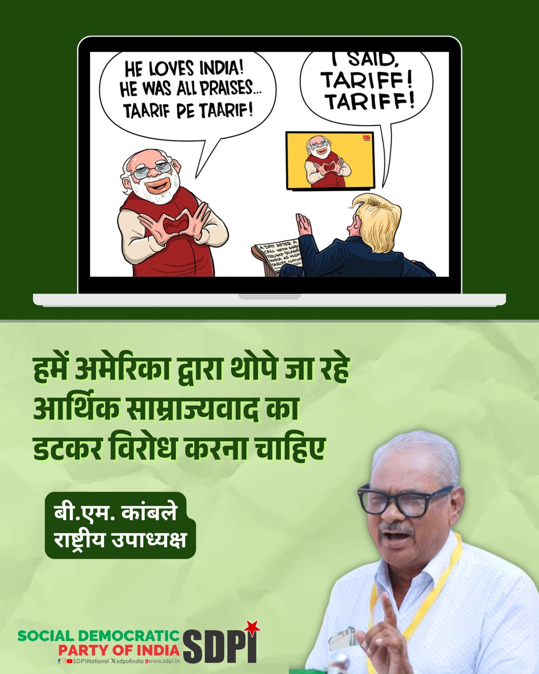 हिंदुस्तान से निर्यात होने वाले सभी उत्पादों और सेवाओं पर 1 अगस्त से लागू 25 प्रतिशत का भारी शुल्क और रूस के साथ व्यापारिक संबंधों को लेकर अतिरिक्त दंडात्मक शुल्क लगाने की धमकी, हमारी आर्थिक संप्रभुता पर गंभीर हमला है। हमें हर हाल में इस चुनौती का मुकाबला करना होगा और इसे परास्त करना होगा।