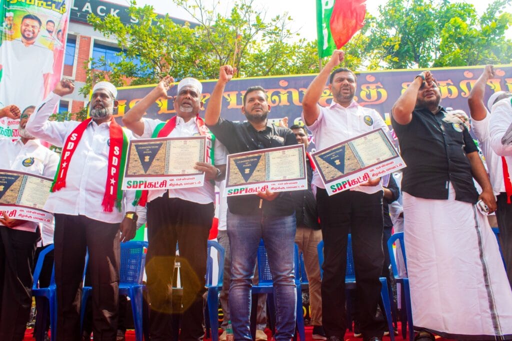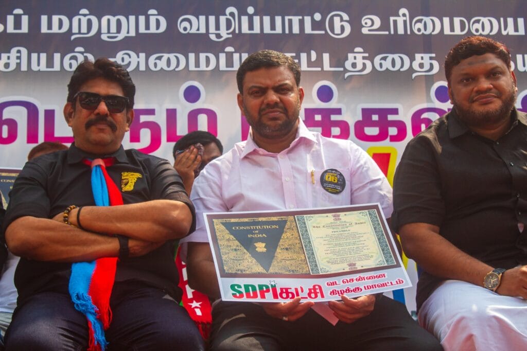 SDPI State President Nellai Mubarak, VKC Deputy General Secretary and MLA S.S. Balaji, who participated in the protest as special invitees, delivered speeches emphasizing the demand. In addition, Maulavi Abdul Gani Bhakavi, SDTU Chennai Zone President Muzammil Pasha, and VIM State Executive Committee Member Samima also delivered speeches.