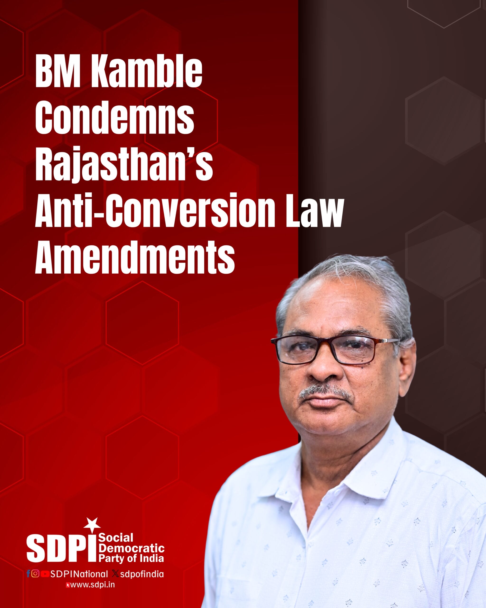 BM Kamble, National Vice President of the Social Democratic Party of India, unequivocally denounces the Bhajan Lal Sharma-led BJP government’s amendments to the Rajasthan Prohibition of Religious Conversion Act, passed by the cabinet on August 31, 2025, and slated for the assembly session starting today. These amendments, imposing life imprisonment and fines up to Rs 50 lakh for alleged forced conversions while exempting “ghar wapsi” (reconversion to Hinduism), are a blatant attack on India’s constitutional values of secularism and religious freedom. They expose the BJP’s hypocrisy in promoting a divisive, majoritarian agenda.