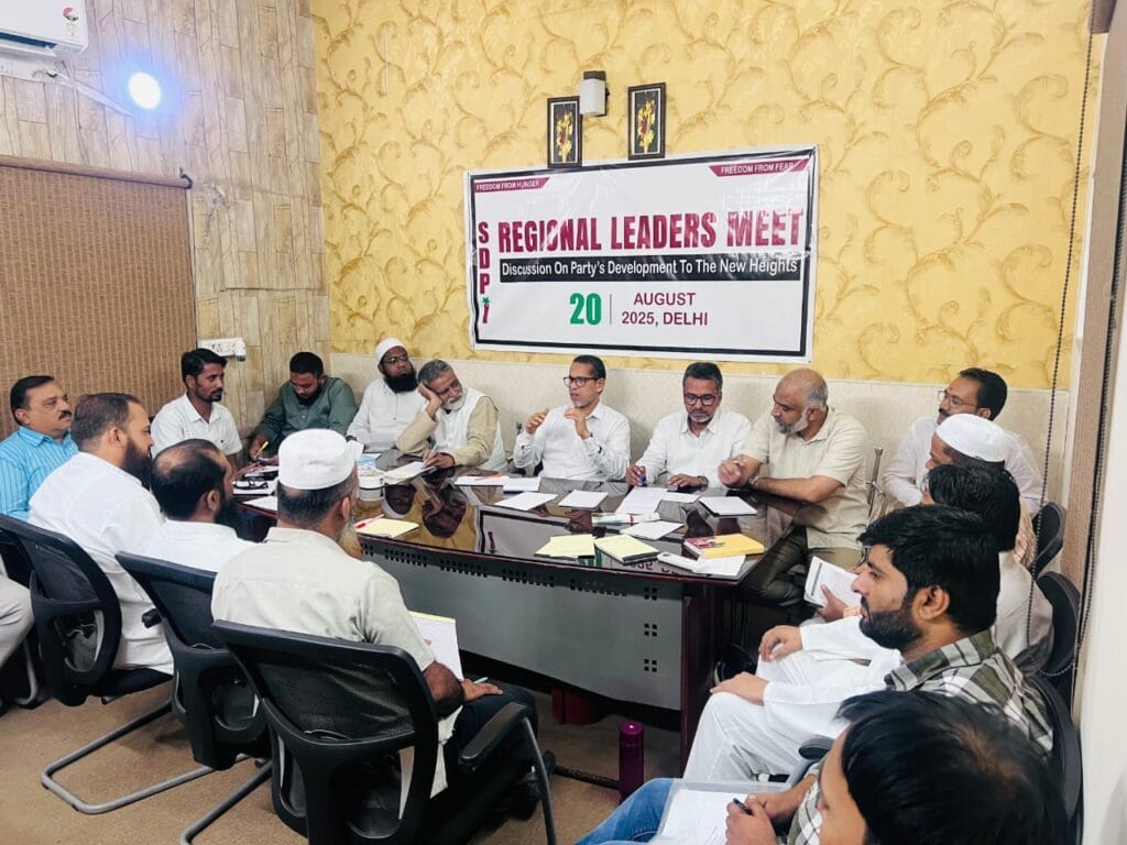 A regional meeting on the theme “Discussion on Party’s Development to New Heights” was held at the SDPI headquarters in Hazrat Nizamuddin, New Delhi. The meeting was attended by National General Secretaries Elyas Muhammad Thumbe and Abdul Majeed Faizy, Secretary Riyaz Farangipet, along with state leaders from Delhi, Uttar Pradesh, Rajasthan, and Gujarat.