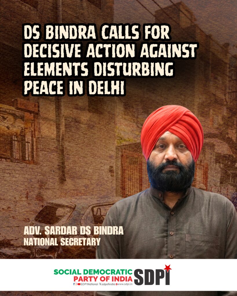 Adv. Sardar DS Bindra, National Secretary of the Social Democratic Party of India, has expressed serious concern over the rising tensions in Uttam Nagar, Delhi, and called for immediate and impartial action to safeguard peace and communal harmony.