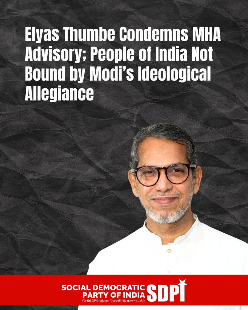 Muhammad Elyas Thumbe, National General Secretary of the Social Democratic Party of India, has strongly condemned the recent advisory issued by the Ministry of Home Affairs directing states to monitor and act against voices protesting the unjust atrocities carried out by the United States and Israel against Iran. He stated that this is not merely about so called pro Iranian expressions, but about citizens raising their conscience against war, destruction and violations of sovereignty. He described the advisory as a calculated attempt to intimidate dissenting voices and suppress democratic opinion within India. In a democracy, citizens have the right to express solidarity with oppressed peoples and to question unjust wars without fear of surveillance or reprisal. Such directions from the central government create an atmosphere of fear and undermine the constitutional guarantee of freedom of expression.
