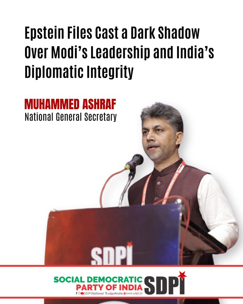 Muhammed Ashraf, National General Secretary of the Social Democratic Party of India, strongly condemns Prime Minister Narendra Modi in light of disturbing disclosures from the recently released Jeffrey Epstein files by the United States Department of Justice.