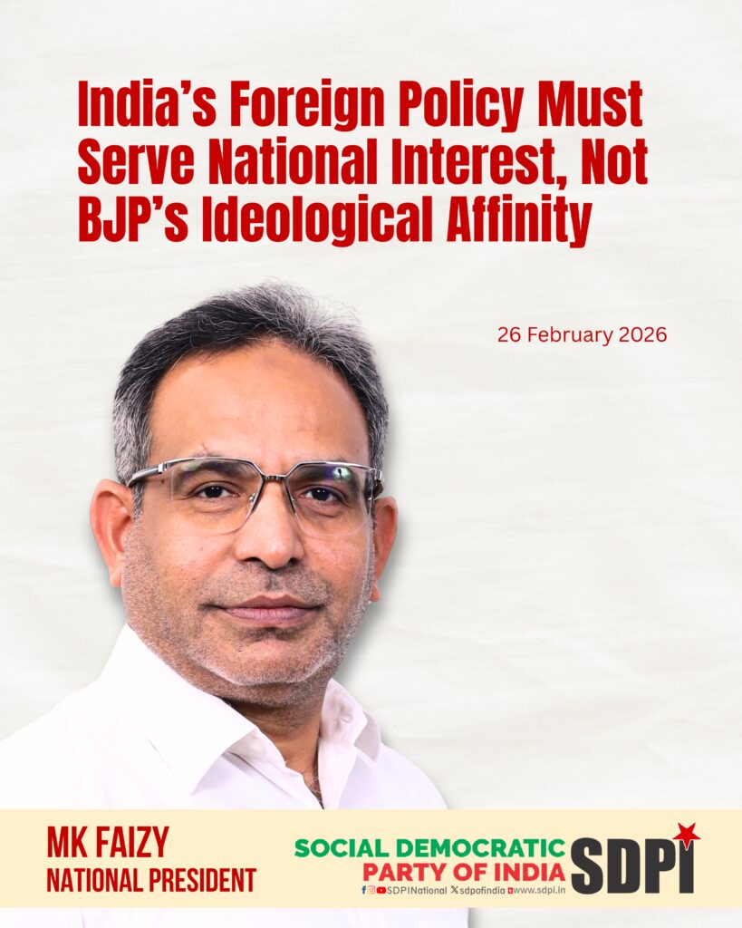 MK Faizy, National President of the Social Democratic Party of India, has strongly criticised Prime Minister Narendra Modi’s ongoing visit to Israel at a time when the Occupied Palestinian Territory continues to endure unprecedented devastation. He stated that this visit marks a significant shift away from India’s historic commitment to justice, balanced diplomacy and strategic autonomy in West Asia. By foregrounding defence cooperation and strategic convergence with Israel while Gaza faces immense humanitarian suffering, the government risks compromising India’s long standing independent foreign policy framework.