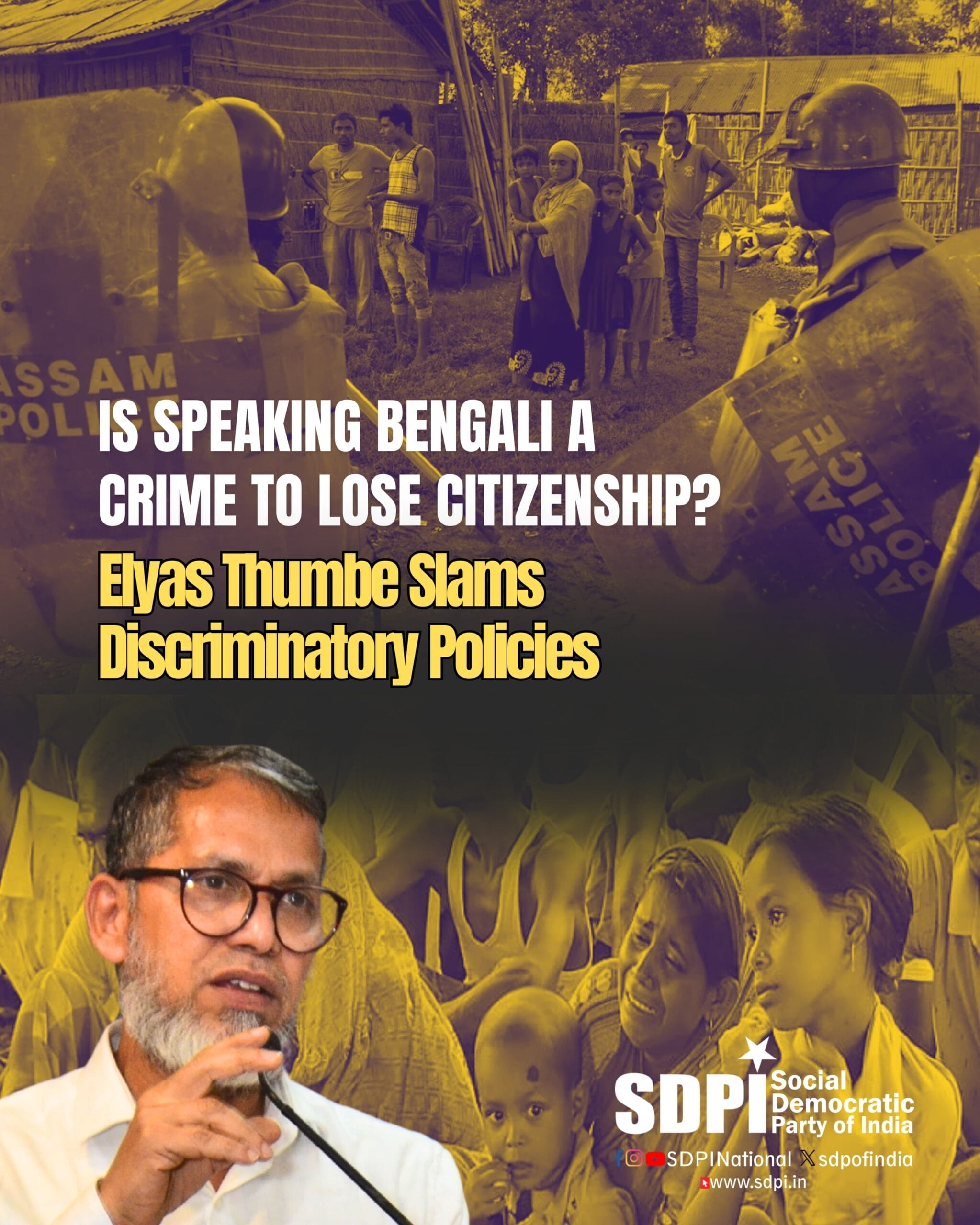 The SDPI condemns this systemic harassment, which appears to target Bengali-speaking Muslims solely based on their language and religious identity, fostering an environment of fear and discrimination.