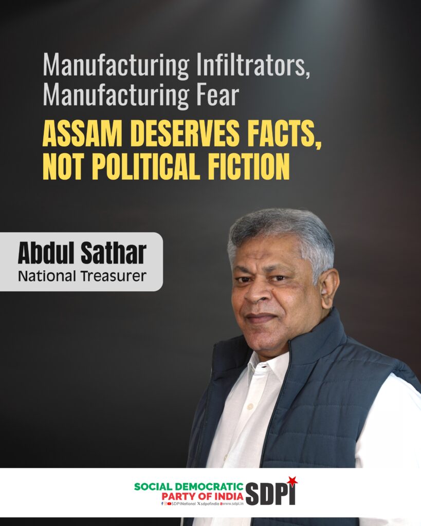Abdul Sathar, National Treasurer of the Social Democratic Party of India, has strongly condemned the baseless and provocative statement made by Union Home Minister Amit Shah in Dhemaji, where he claimed that seven districts of Assam are occupied by 6.4 million infiltrators and attributed this alleged transformation to two decades of Congress rule while asserting that only the BJP can reverse it. He described the claim as electoral misinformation that risks deepening social divisions and distorting public understanding of migration and citizenship.