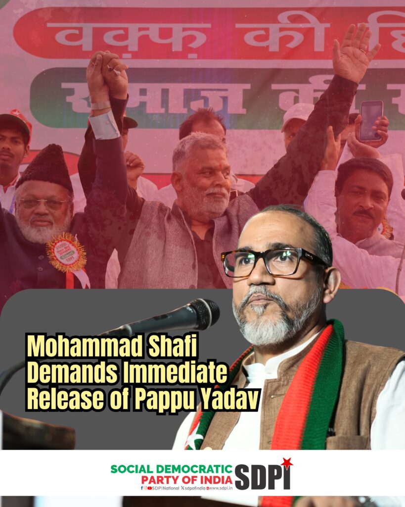Such actions undermine democratic principles and erode public trust in law enforcement. The SDPI demands the immediate release of Pappu Yadav, an independent inquiry into the circumstances of his arrest, and an end to revenge politics that weaponizes the legal system against those defending the rights of the marginalized and vulnerable.