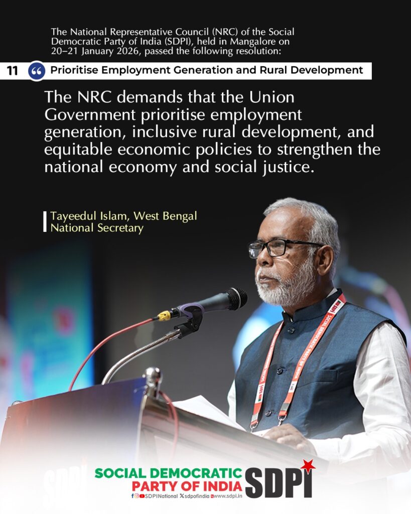 The NRC demands that the Union Government prioritise employment generation, inclusive rural development, and equitable economic policies to strengthen the national economy and social justice.