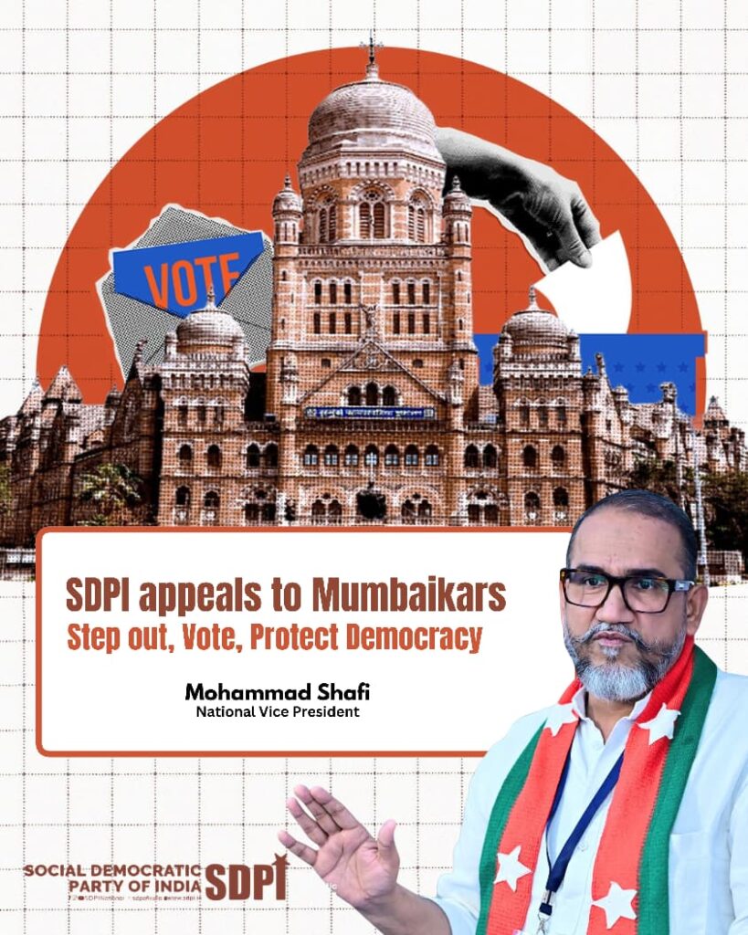 The Social Democratic Party of India (SDPI) urges every Mumbaikar, youth, women, workers, and senior citizens, to come out in large numbers and vote in the BMC elections. Do not let money, fear, or manipulation decide the future of your city.