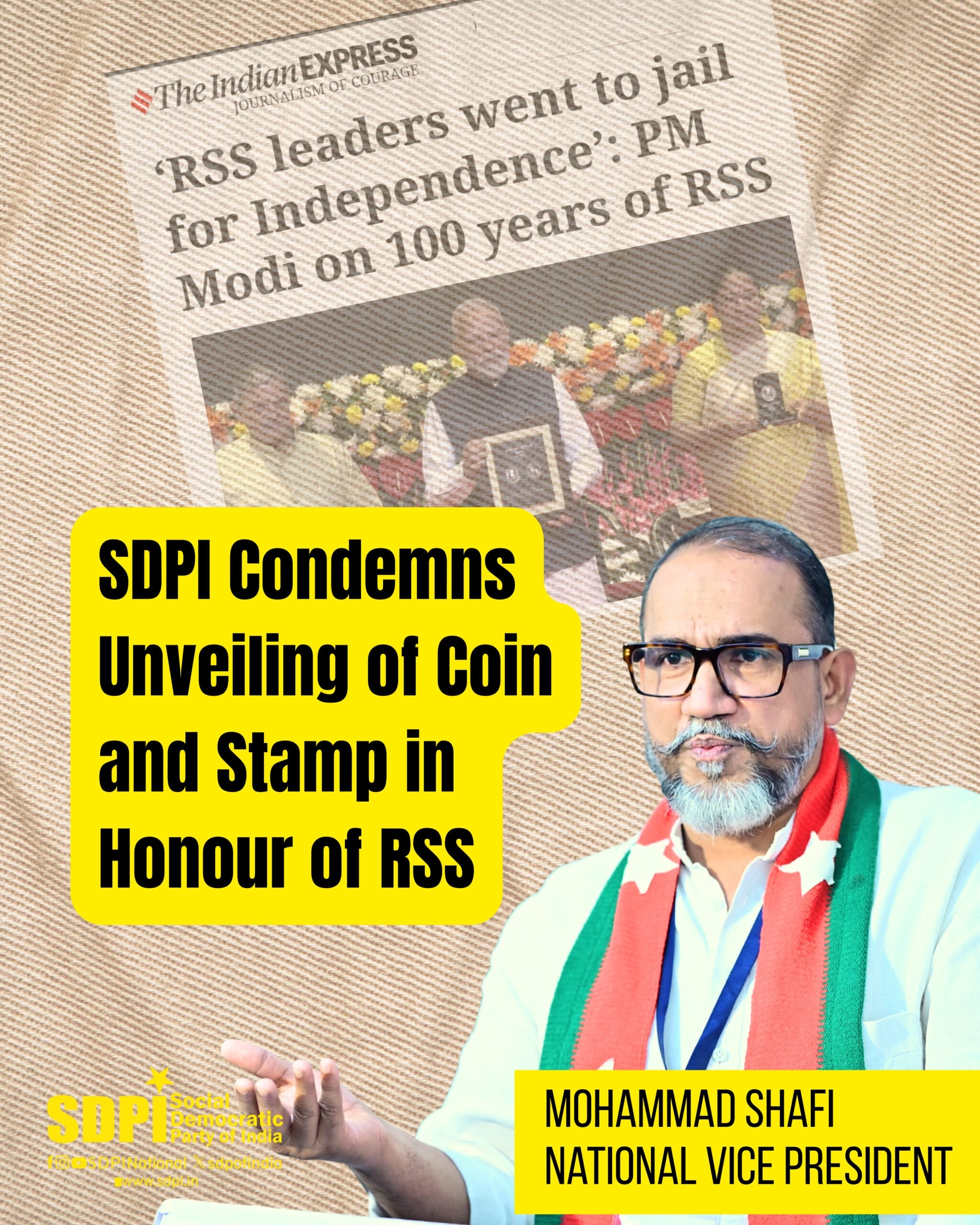 SDPI demands that the Union Government immediately withdraw the coin and stamp issued in the name of RSS and stop glorifying forces that weaken the secular and democratic fabric of India.