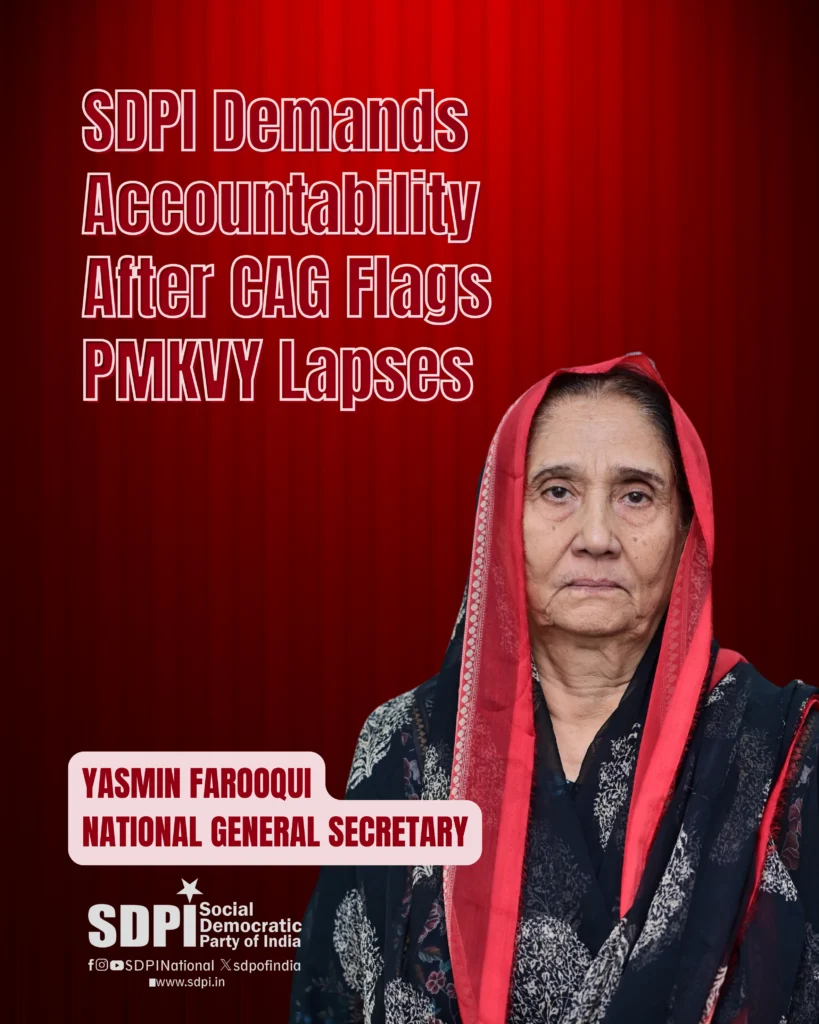 The Social Democratic Party of India expresses profound concern over the Comptroller and Auditor General’s (CAG) performance audit report on the Pradhan Mantri Kaushal Vikas Yojana (PMKVY), tabled in Parliament during the Winter Session.Yasmin Farooqui, national general secretary condemns the glaring lapses in this flagship skilling scheme under the Modi government, which expose systemic failures in governance and accountability.