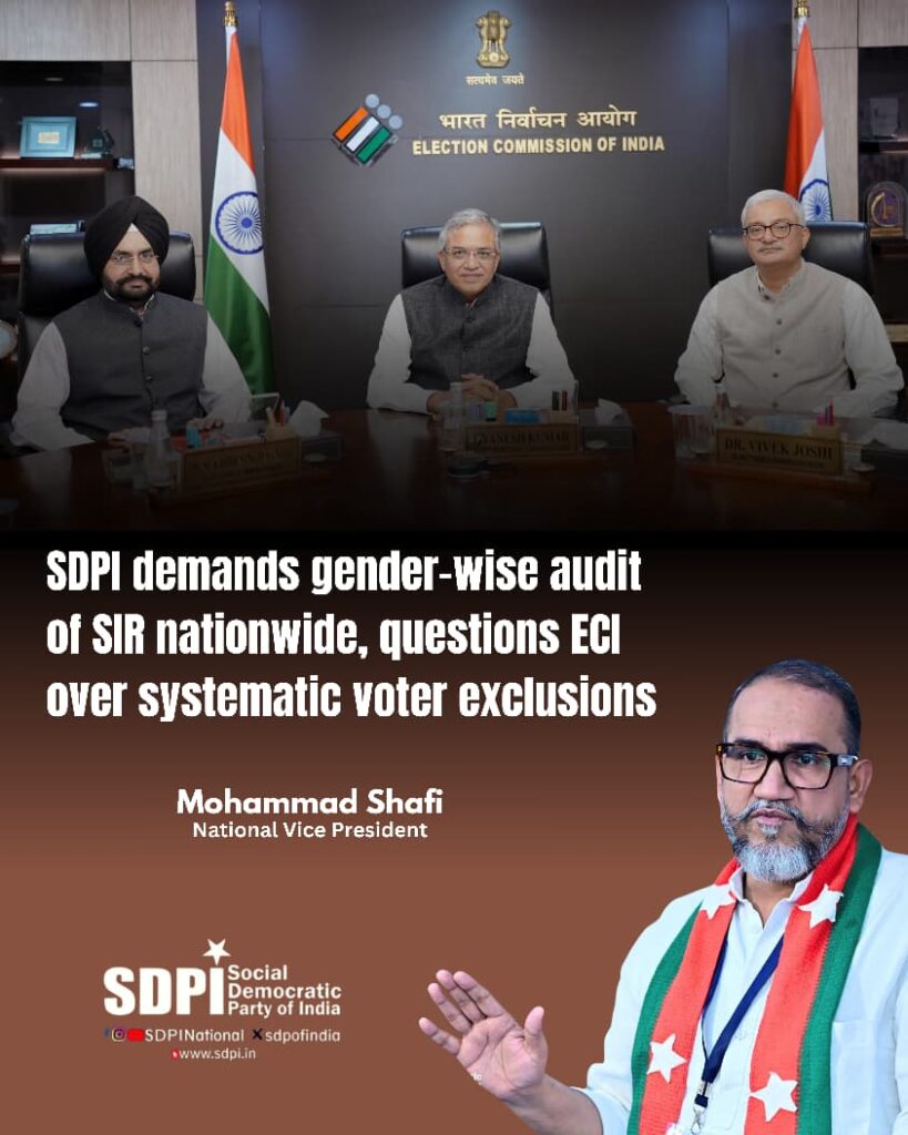 — SDPI appeals to civil society organisations, women’s groups, minority rights collectives, academics, journalists, and legal experts to independently examine SIR electoral rolls across states and document the emerging national trend of omissions affecting women, marginalised communities, and minorities.