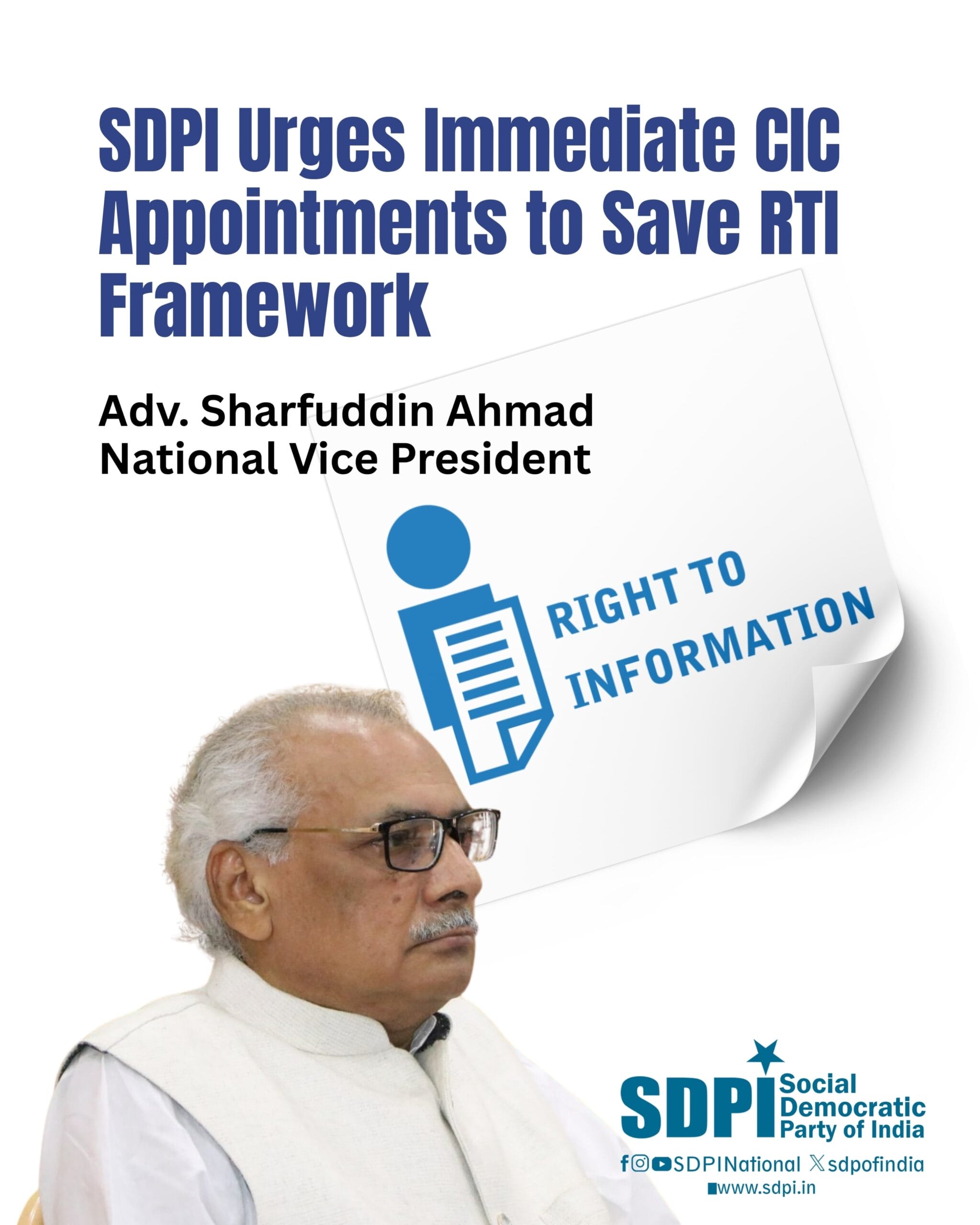 The SDPI demands immediate appointments to the CIC, full compliance with Supreme Court orders, and transparency in the selection process. We stand with RTI activists and citizens in defending the right to information. The government must act now to restore the CIC’s integrity and uphold India’s democratic values.