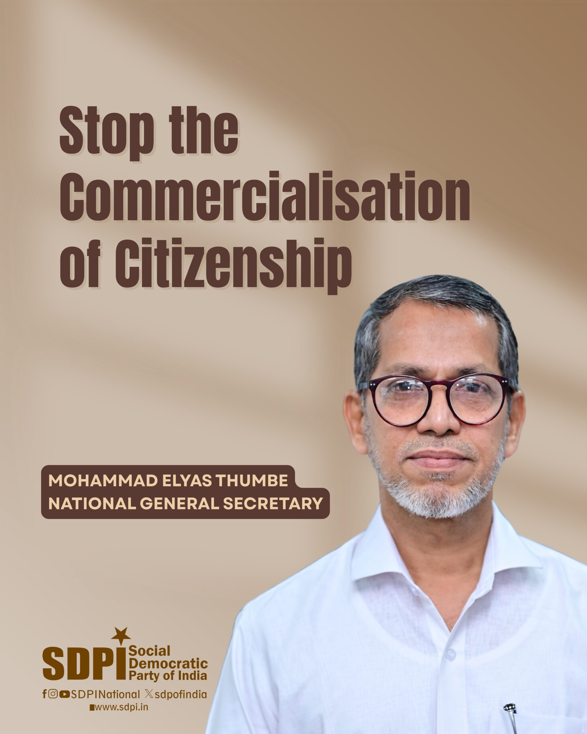 Mohammad Elyas Thumbe, National General Secretary of the Social Democratic Party of India strongly condemns the revelations that at citizenship camps under the Citizenship (Amendment) Act, 2019 in Thakurnagar, West Bengal, applicants from the Matua community are being charged up to ₹800 for submission of forms, along with promises of “no rejection”. These camps, reportedly overseen by senior BJP leaders, are distributing “Hindu identity cards” and “Matua membership cards” and linking citizenship rights to payment and political allegiance.Turning the grant of citizenship into a paid service is a travesty of justice. This is a transactional politics, exploiting the vulnerable and undermining the secular, democratic ethos of our nation.