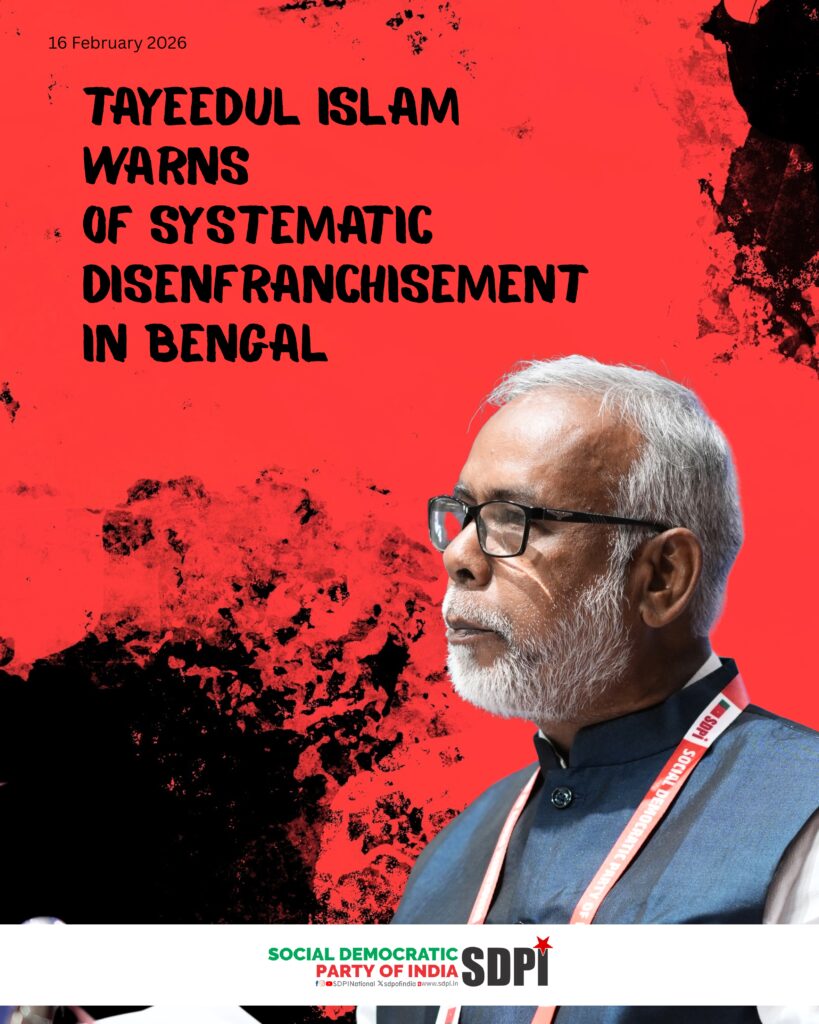 Tayeedul Islam, National Secretary of the Social Democratic Party of India, today expressed profound shock and unequivocal condemnation over revelations emerging from the Special Intensive Revision hearings in West Bengal, where electoral authorities have deleted more than 6.61 lakh additional voters, pushing the total number of removals to nearly 65 lakh ahead of the 2026 Assembly elections.