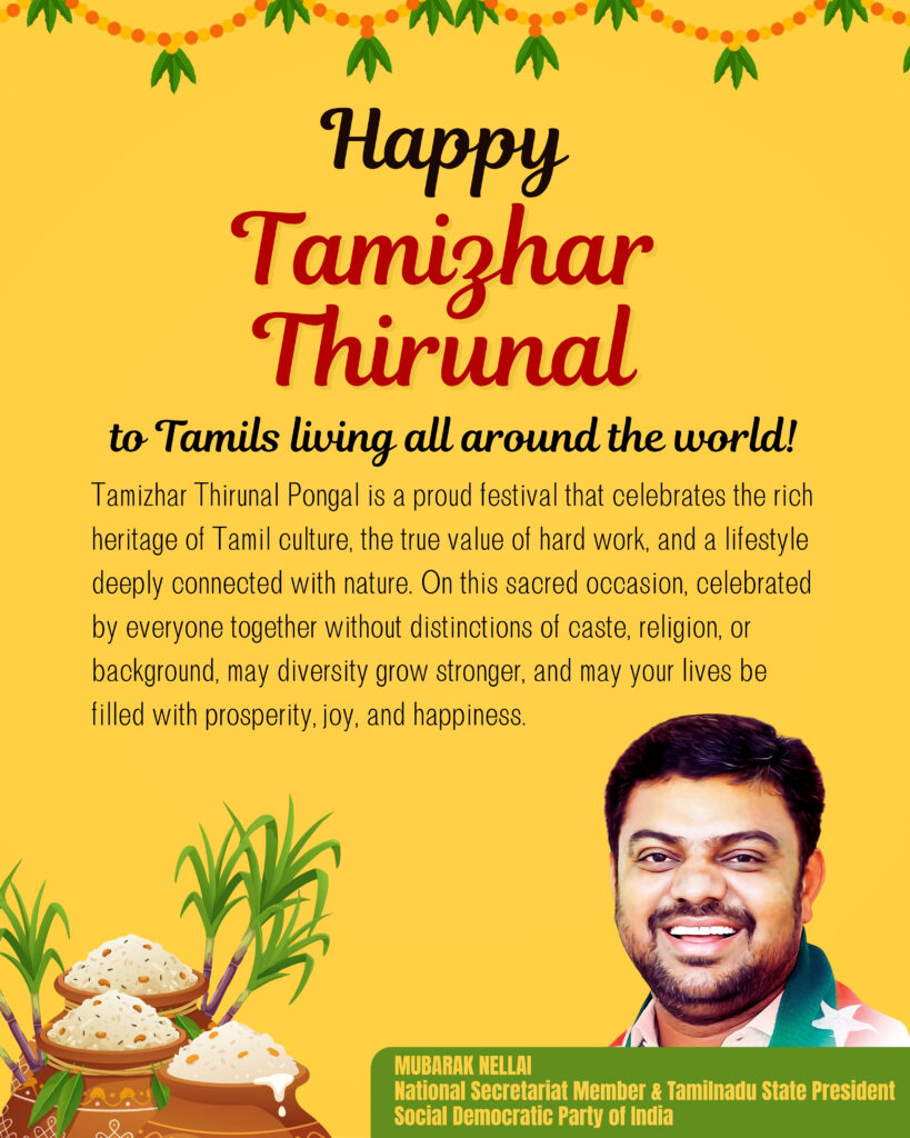 Tamizhar Thirunal Pongal is a proud festival that celebrates the rich heritage of Tamil culture, the true value of hard work, and a lifestyle deeply connected with nature. On this sacred occasion, celebrated by everyone together without distinctions of caste, religion, or background, may diversity grow stronger, and may your lives be filled with prosperity, joy, and happiness.